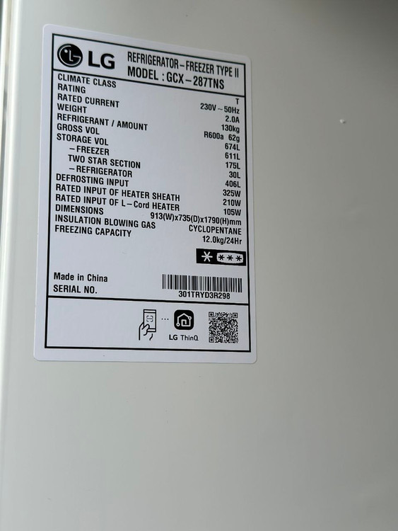 ظرفیت یخچال ساید بای ساید X287 ال جی