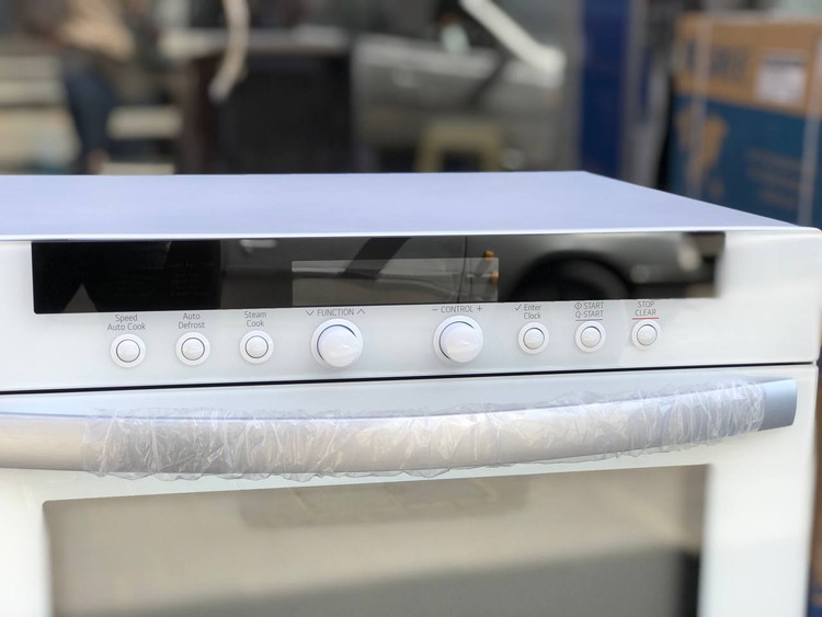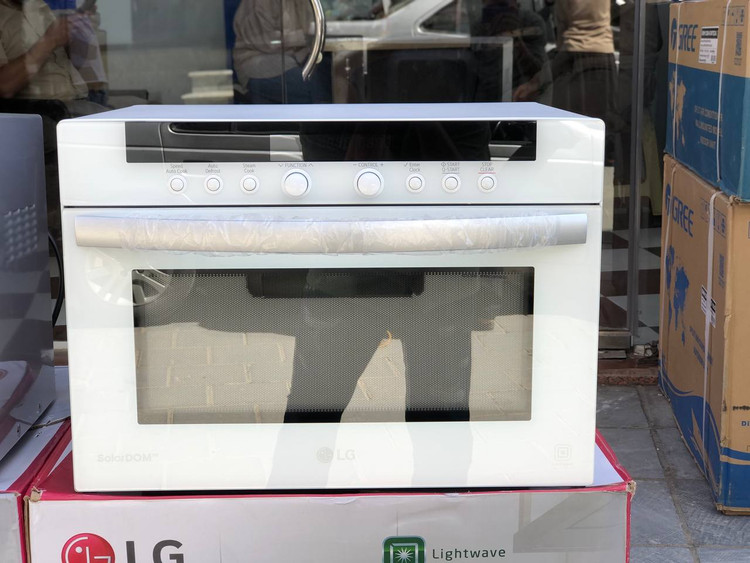 در پایین پنل لمسی دو عدد ولوم چرخان در وسط و شش دکمه فیزیکی که به ترتیب در هر طرف سه عدد قرار گرفتهاند وجود دارد، تا شما قادر باشید به دلخواه خود برنامههای مورد علاقه خود را اعمال نمایید. در پایین آنها نیز درب دستگاه قرار گرفته است که توسط دستگیره هلالی شکل باریک باز میشود. این درب با کشیدن به جلو باز شده و با فشار دادن دوباره در جای خود قرار میگیرد و بسته میشود. درب از فلز و شیشه ساخته شده تا در مواقع لزوم داخل ماکروویو دیده شده و تنظیمات لازم اعمال در رابطه با طبخ غذا اعمال گردد. با باز شدن درب با حفره گرد داخلی روبرو میشوید. طراحان ال جی در طراحی فضای داخلی سولاردوم گوشهها را حذف کرده و فضایی گرد و دایرهای شکل با ظرفیت گنجایش 38 لیتر را برای شما ایجاد کردهاند.