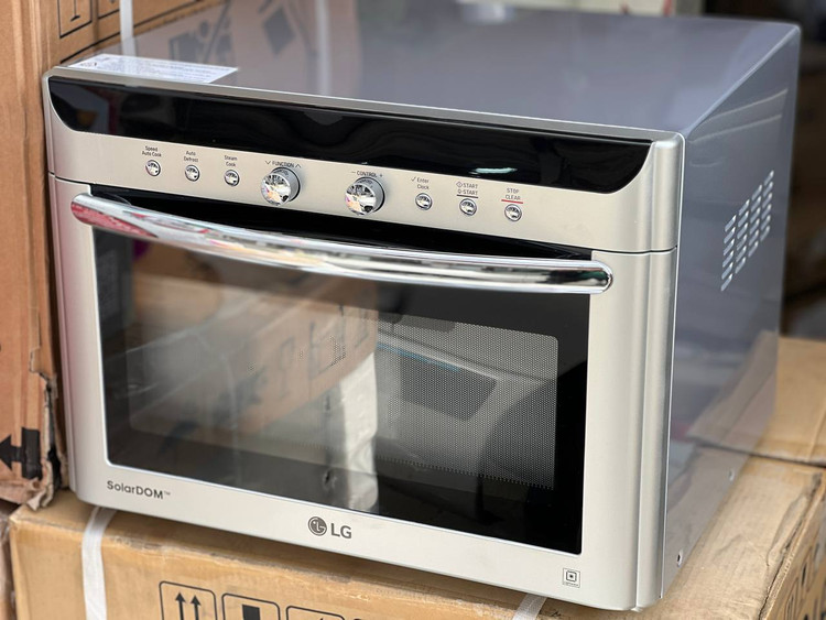 سولاردوم ال جی 3884 یکی از بهترین محصولات کمپانی بزرگ و موفق ال جی در سالهای اخیر است که با استفاده از تکنولوژیها و فناوریهای روز دنیا ساخته و عرضه بازار شده است. سولاردوم ال جی دارای طراحی بسیار شیک و مدرن با رنگ نقرهای و جنس فلز ضد زنگ میباشد. همچنین دارای پنل لمسی هوشمند LED و درب شیشهای مقاوم و حرارت دیده با دستگیره هلالی شکل باریک است که با کشیدن به سمت جلو باز میشود. این محصول دارای دو ولوم چرخان و شش دکمه فیزیکی جهت اعمال تنظیمات و برنامههای مختلف پخت غذا میباشد.
