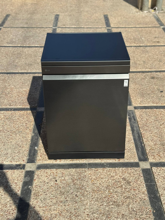 این ظرفشویی خوش استایل ال جی در نمای روبرو یک بدنه صاف و یک دست دارد که عملاً درب دستگاه محسوب میشود و از طریق یک دستگیره توکار در بالا به سمت جلو کشیده میشود. قسمت بالایی دستگیره هم صفحه نمایش با چراغ LED مستقر شده که زمان باقی مانده از شستشو را به نمایش میگذارد.
