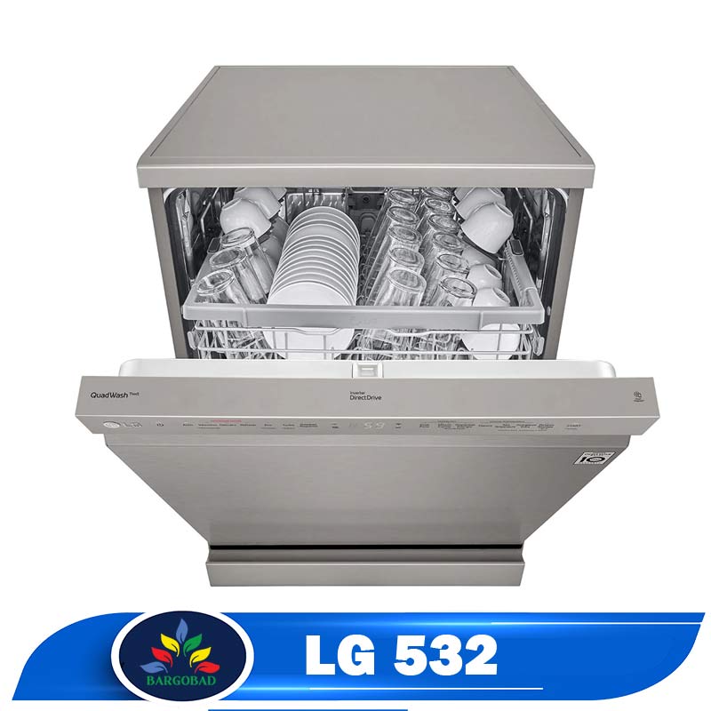 ظرفشویی 532 ال جی از فناوری منحصربفردی به نام QuadWash استفاده می کند که در آن، ظرفشویی به جای 2 بازوی اسپری آب از 4 بازو برای تمیز کردن ظروف بهره می برد و همین باعث می شود ظرف ها در اولین مرحله، کاملا تمیز شوند. اگر تا به حال در ماشین ظرفشویی هایتان نتوانسته اید رابط کاربری آسانی را تجربه کنید، ال جی در این ظرفشویی این کار را برای شما میسر کرده است! قابلیت تنظیم آسان ارتفاع و جابه جایی قفسه بالایی در ظرفشویی 532 این امکان را به شما می دهد به راحتی بتوانید قابلمه و پارچ های بزرگ آب را جایگذاری نمایید؛ همچنین قابلیت دیگری که در این ظرفشویی کار شما را راحت می سازد Dual Zone Wash است. این ویژگی، تابع موتور اینورتر دایرکت درایو است که با تنظیمات سفارشی اجازه می دهد ظروف شیشه ای و حساس به آرامی در طبقه بالایی شستشو داده شوند و قابلمه های بزرگ در طبقه پایین با فشار آب کاملا تمیز شوند.