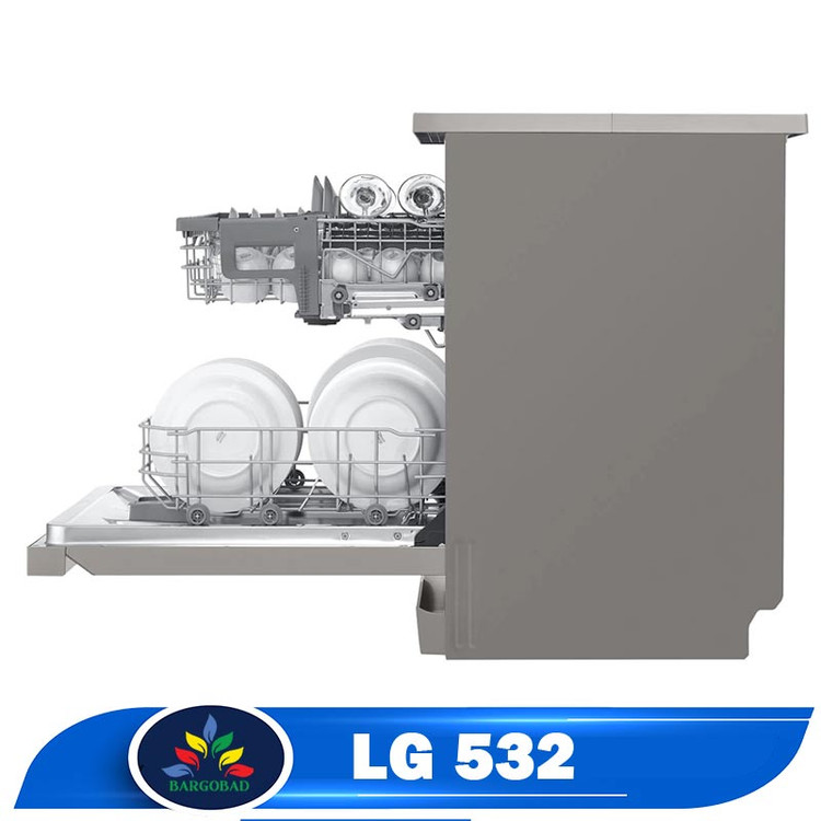 اگر به دنبال خرید بهترین ماشین ظرفشویی هستید راه را درست آمده اید! ماشین ظرفشویی LG مدل 532 نه تنها کارایی بالایی دارد بلکه در طراحی آن نیز نکات خاصی رعایت شده است که باعث می شود کار با این دستگاه راحت باشد. 2 قفسه بزرگ برای نگهداری ظروف، با باز کردن درب در اختیار شما قرار می گیرند که سبد بالایی به راحتی قابلیت تغییر ارتفاع در سه حالت را دارد و این امکان جایگذاری انواع پارچ های بلند و قابلمه های بزرگ را در قفسه پایین فراهم می سازد؛ ال جی این را قابلیت EasyRack Plus نامیده است.